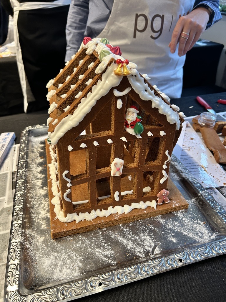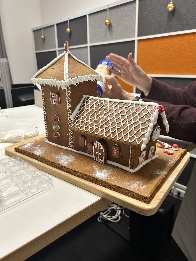 Bei unserer Weihnachtsfeier wurde bei uns nicht nur genascht, sondern auch geplant, gebaut und konstruiert: Insgesamt sechs Gruppen traten in einem kreativen Wettbewerb im Lebkuchenhausbau gegeneinander an. Ziel war es, aus vorgegebenen Materialien ein möglichst stabiles, kreatives und ansprechendes Lebkuchenhaus zu entwerfen.
