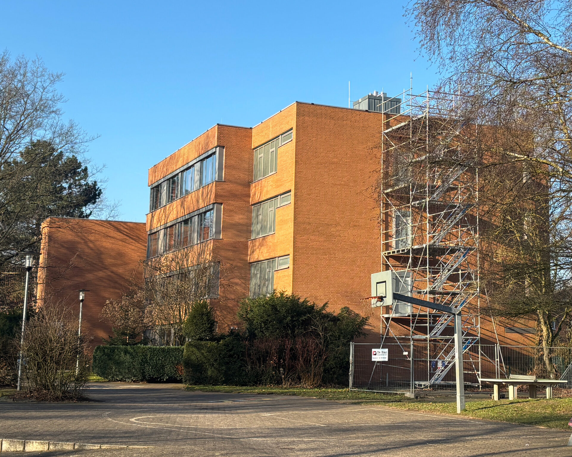 An dem Internatsgebäude sollen zwei Maßnahmen umgesetzt werden: Zum einen ist die Sanierung der Trink- und Schmutzwasserleitungen, sowie eine Erneuerung der Bäder vorgesehen. Zum anderen soll eine Dachertüchtigung erfolgen. Die Bearbeitung erfolgt in zwei Bauabschnitten.